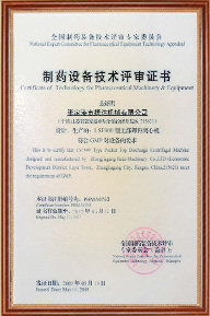通過(guò)ISO9001:2000國(guó)際質(zhì)量體系認(rèn)證,安全生產(chǎn)標(biāo)準(zhǔn)化企業(yè)認(rèn)證,全國(guó)制藥裝備GMP技術(shù)評(píng)審
