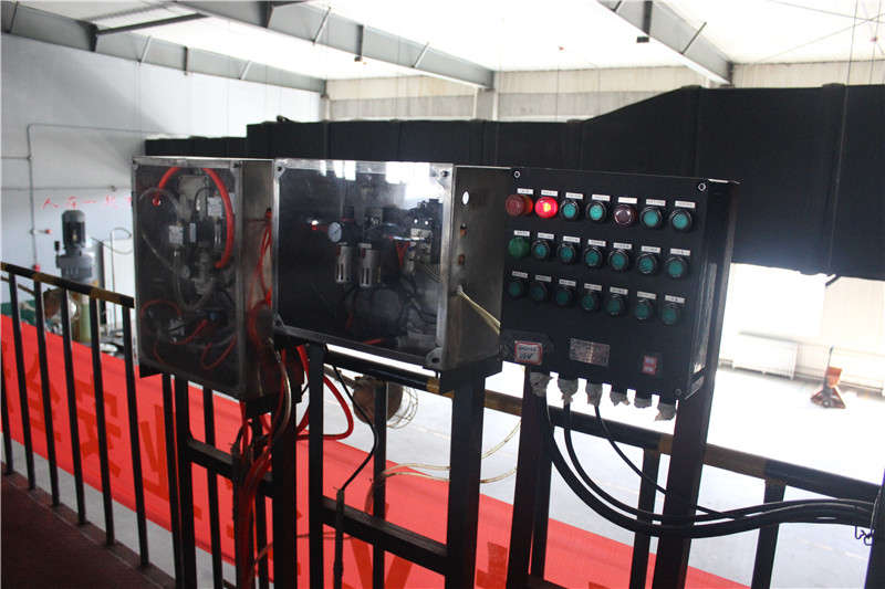 該車間屬于防爆車間,離心機(jī)機(jī)組配有氮?dú)獗Wo(hù)系統(tǒng),下圖為離心機(jī)氮?dú)獗Wo(hù)系統(tǒng)控制箱、氣動(dòng)控制箱及現(xiàn)場(chǎng)防爆操作箱(從左至右)