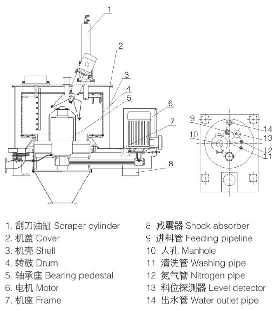 ■ 結(jié)構(gòu):外殼配置翻蓋及進(jìn)料管、洗滌管、觀察鏡、排氣口、照明孔;密閉結(jié)構(gòu),轉(zhuǎn)鼓及外殼、翻蓋等部件為不銹鋼材料(SUS304)制造。機(jī)座等為鑄造件,表面包襯不銹鋼。轉(zhuǎn)鼓、外殼內(nèi)外表面、機(jī)器外露件表面均拋光處理。